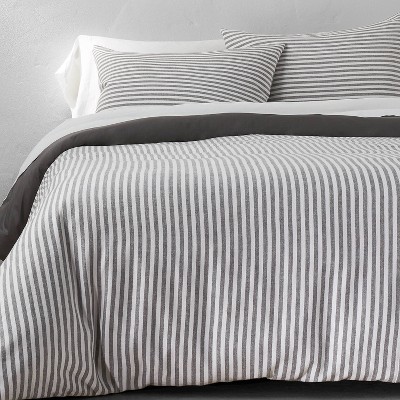 3pc Full Queen Simple Woven Stripe Duvet Sham Set Cognac Threshold Target